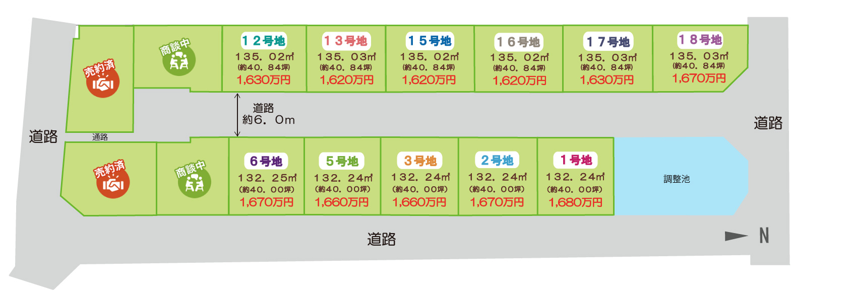 | 6号地(1,670万円) | 132.25㎡ | 約40.00坪 | 更地 |